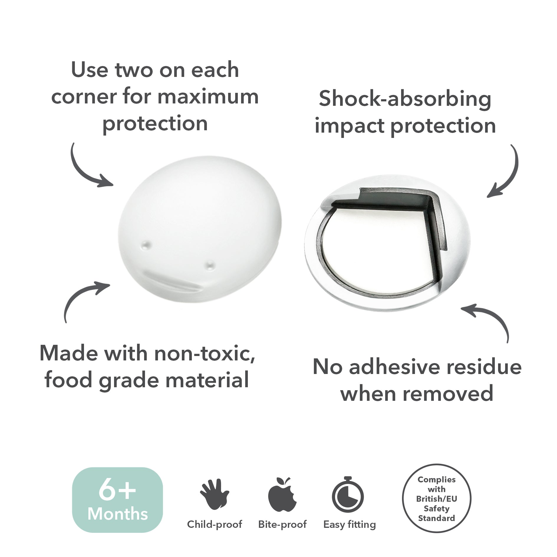Seamlessly blends into any home, the Corner Protector has a simple and discreet design, keeping your home looking aesthetically pleasing all while your little ones safe. These versatile protectors can be put on both the top and bottom of a table corner for added protection (min. 16mm thick).