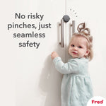 The one-handed Squeeze-n-Lift™ release is impossible for young children and but is also easy to use with one adult hand. Made from bite and choke-safe non-toxic plastic, the block keeps your door completely shut, unlike other locks that present a partial opening at risk of becoming a finger trap.