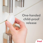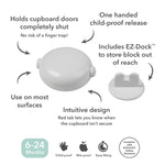 Easily installed with no measurements required, simply select the right locking tab for your cupboard and stick on using our SecureHold™ Adhesive. Includes fittings for when the cupboard is open or has a central vertical support inside. Detailed step by step with illustrations are provided. When no longer needed, simply follow our instructions for easy removal that leaves no marks.