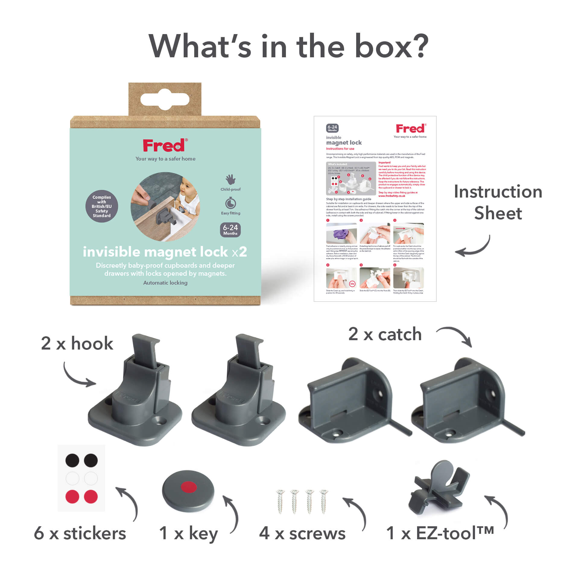FAQs about Fred Safety Invisible Magnet Lock (x2) - Dark Grey