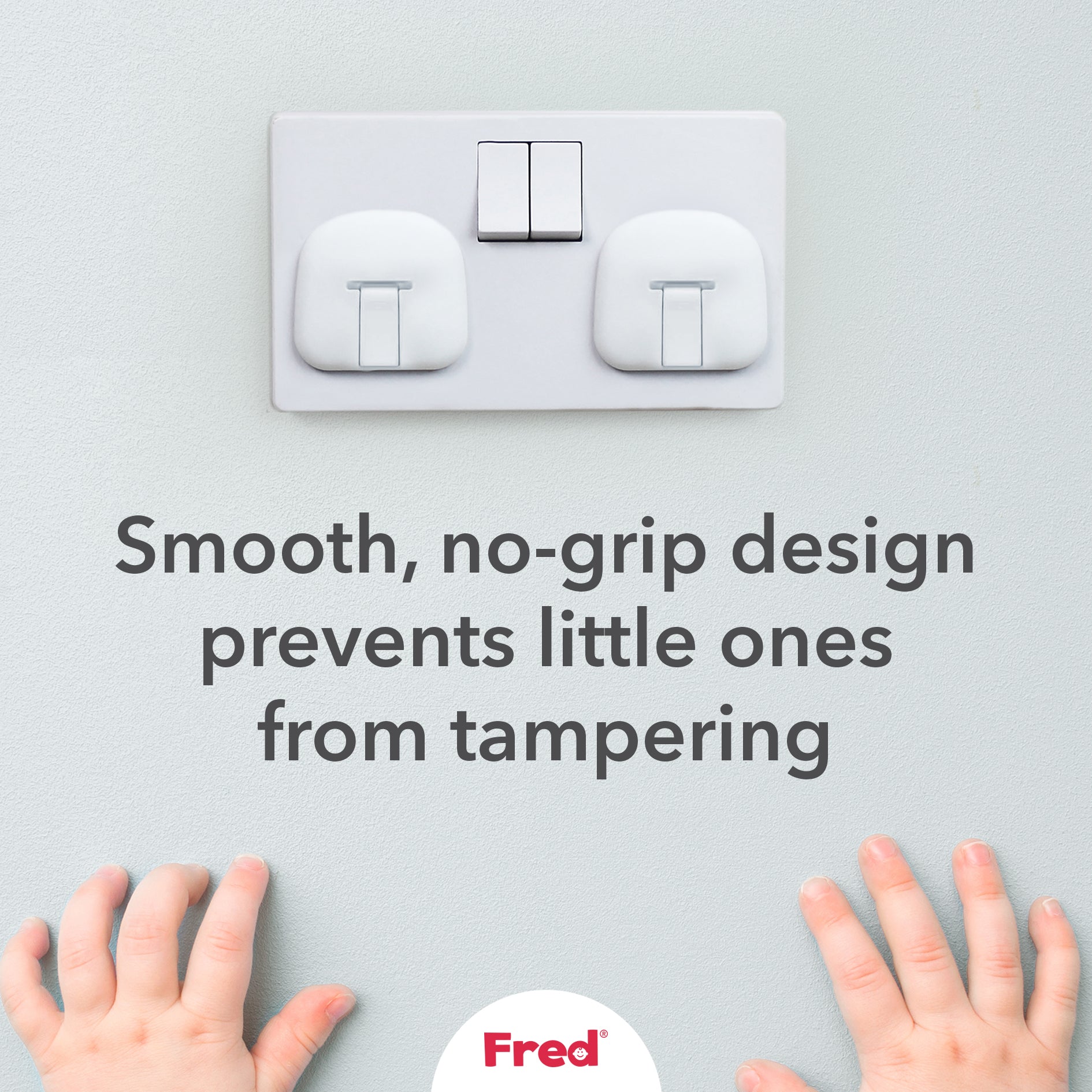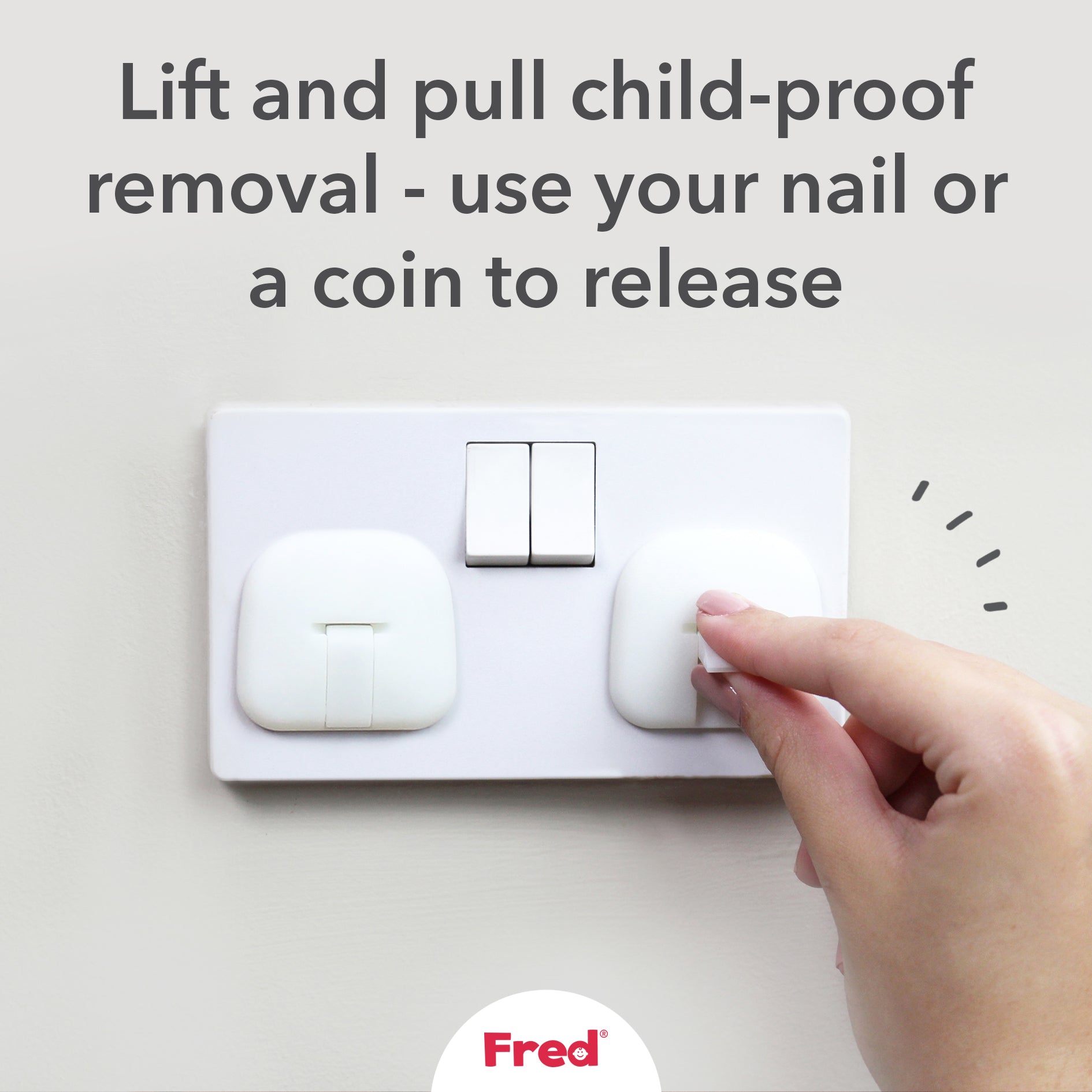 Operate by lifting the tab (using nail or coin) and pulling the socket from the wall. The force needed for this is impossible for young children. Unlike other socket covers, the Fred covers stay firmly in the wall ensuring that no finger traps can form. Also made from bite, choke safe, food-grade materials.