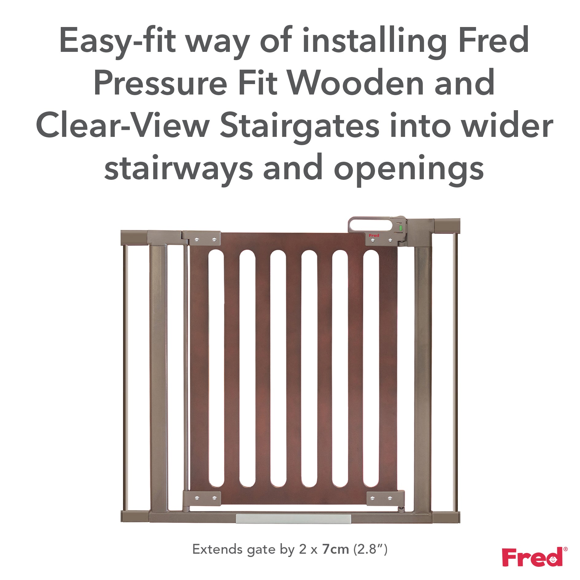 The Fred Safety Pressure Gate Extension Kit is an easy way to extend the Fred Pressure Fit Gate to fit into wider stairways and openings.